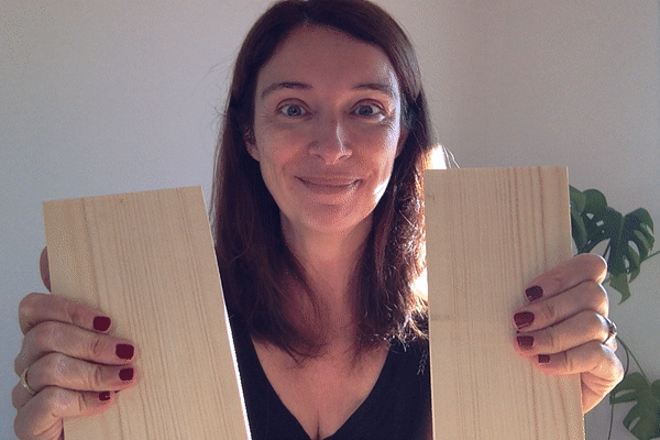 On était censé recevoir un package avec la planche, la fameuse planche à casser, mais comme ça venait des États-Unis, et le Covid n'aidant pas, je n'avais pas ma planche. Je suis donc allée acheter une planche avec les tous les détails qu'il nous avait donnés.